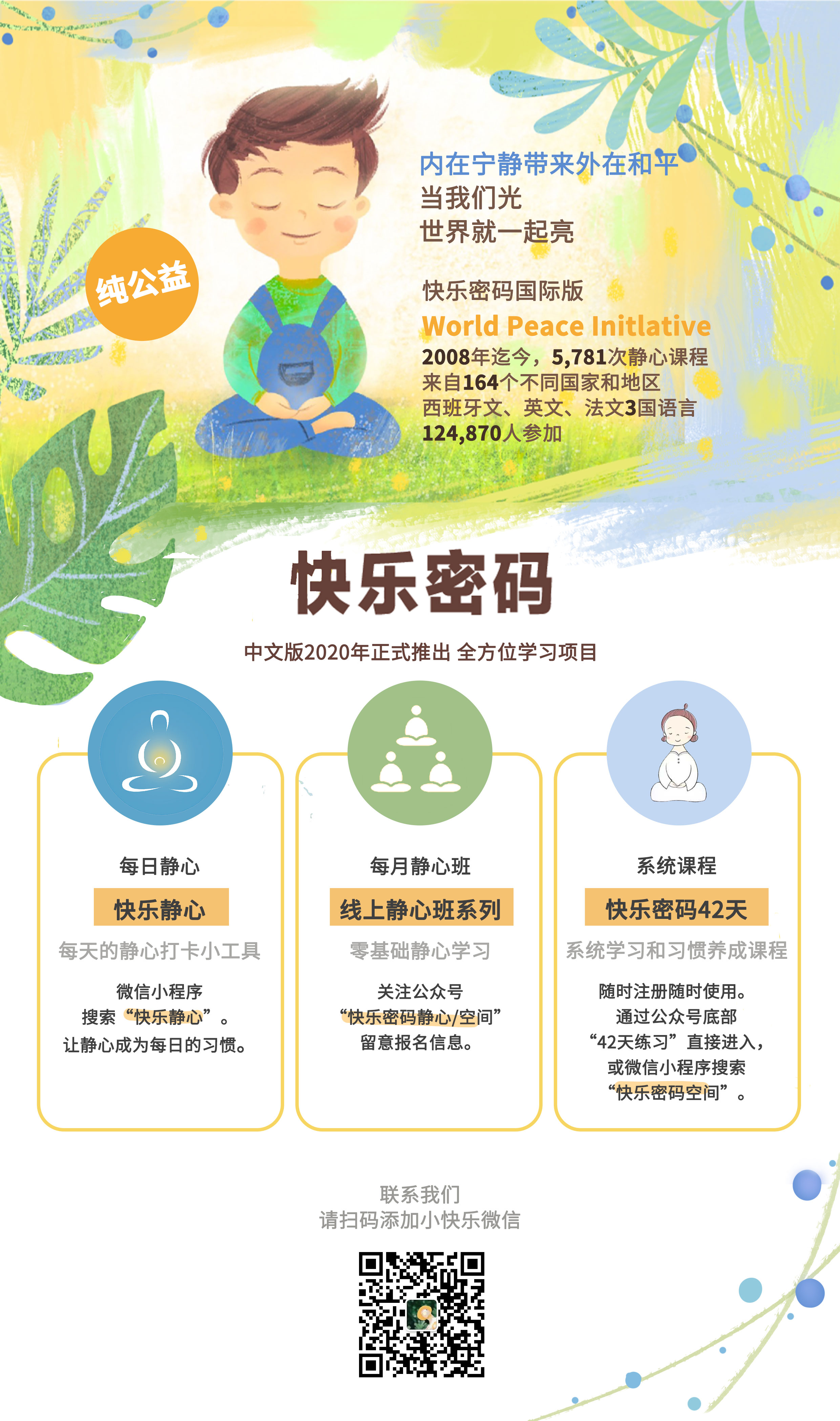 “快乐密码”只需轻轻地将心安放在正确的位置上。什么时候心能静定到一定程度,内在的快乐就会自然而然